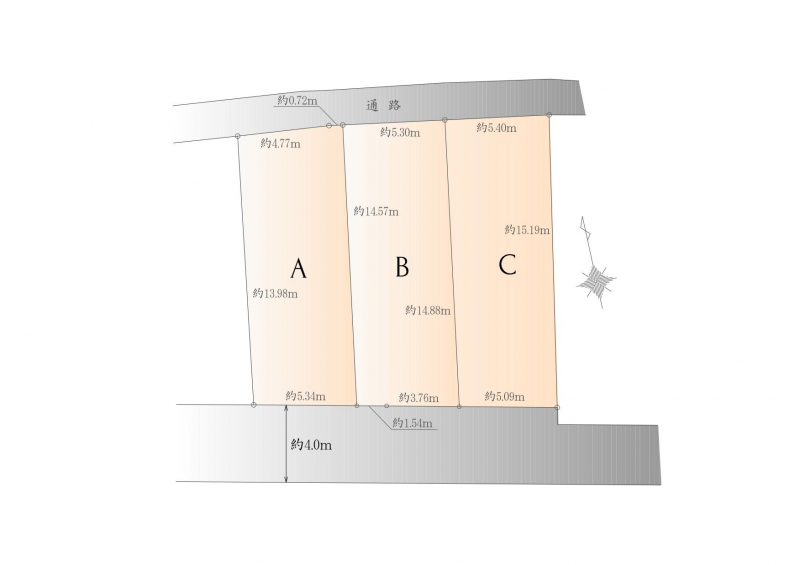 敷地面積 | A区画:約77.44㎡ B区画:約78.16㎡ C区画:約78.90㎡ |