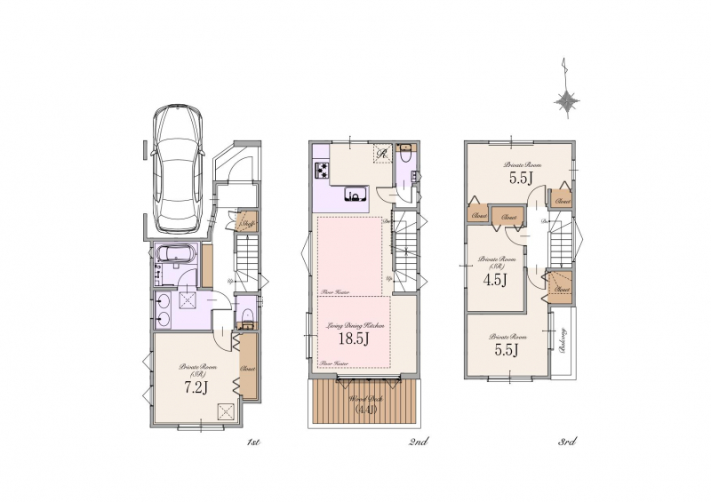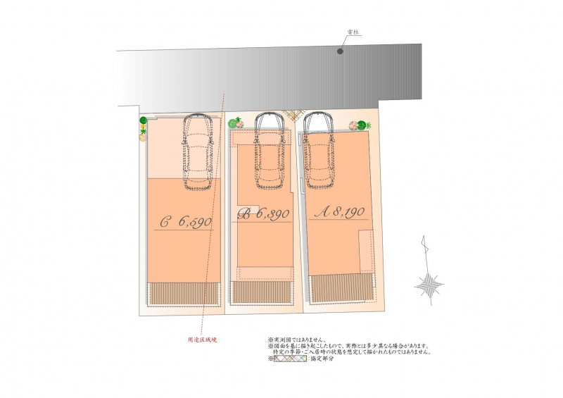 | 敷地面積 | A号棟:67.17㎡ B号棟:60.19㎡ C号棟:69.19㎡ |