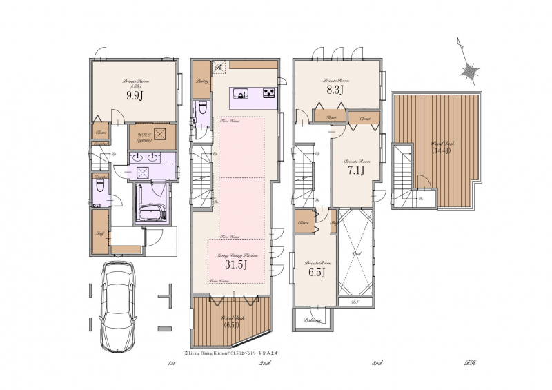 | 建築構造 | 木造スレート葺 3階建て(制震住宅+耐震住宅) | 設備 | 電力各社/公営水道/都市ガス/本下水 |